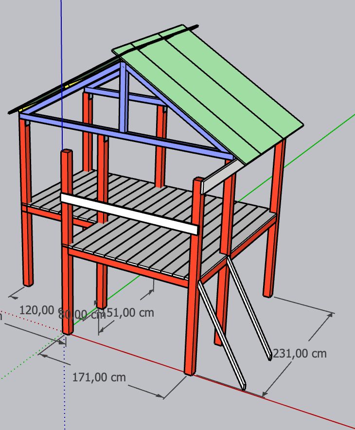Je souhaite construire une cabane sur pilotis pour mes enfants, dont voici les plans :