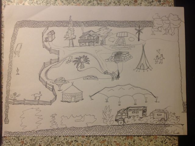 Et un petit croquis retrouvé dans mon bordel de paperasse que j'avais vite fait peu de temps après avoir visité le terrain lors du premier RDV, les choses ont bien évolué depuis, je vais bien repenser l'histoire, faire de nouveaux croquis, puis je me ferai un petit plan de masse en 3D avec Sketchup Pro.