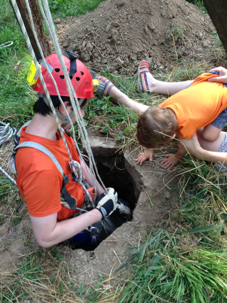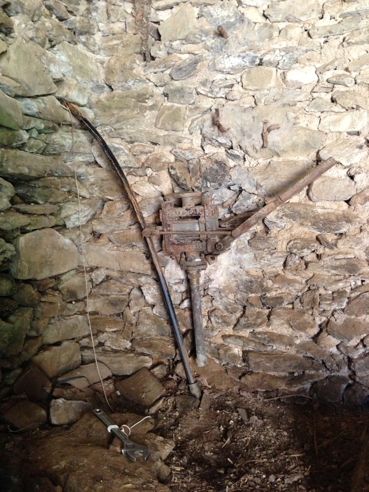 Avant de reboucher, je descend couper le tuyau qui tombe dans le puits pour passer le nouveau dedans, ça m'évite de refaire un trou.