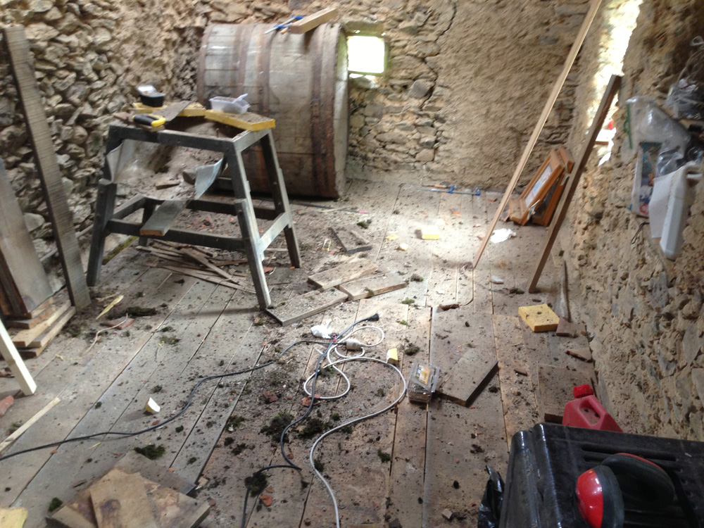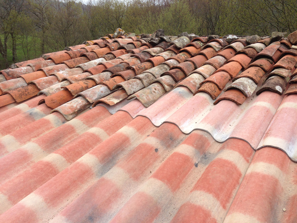 Puis, nous sous sommes attaqué au toit qui n'est pas assez étanche à mon goût. En effet par forte pluie le vent dominant souffle l'eau entre les tuiles et c'est fatal, il pleut à l'intérieur : impossible d'imaginer habiter. D'abord le ménage en retirant les tuiles