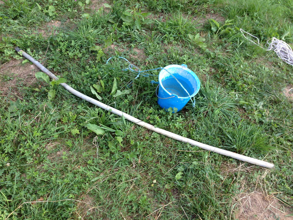 Le bout de tuyau ressortit et on voit la couleur de l'eau dans le seau (elle n'en a pas :D ), mais une partie du tuyau est resté au fond, j'espère qu'il y aura moins d'eau cet été pour aller au fond.