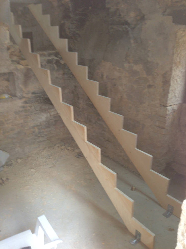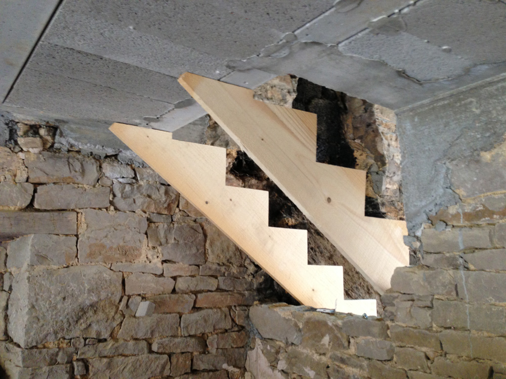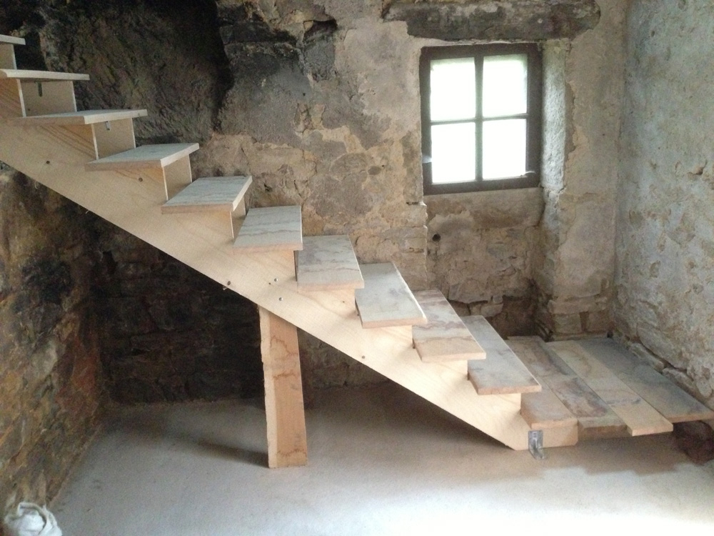 Quand 3 cabanes en Aveyron ne suffisent pas, un chantier dans le Jura se profile : à commencer par un escalier pour accéder à l'étage.